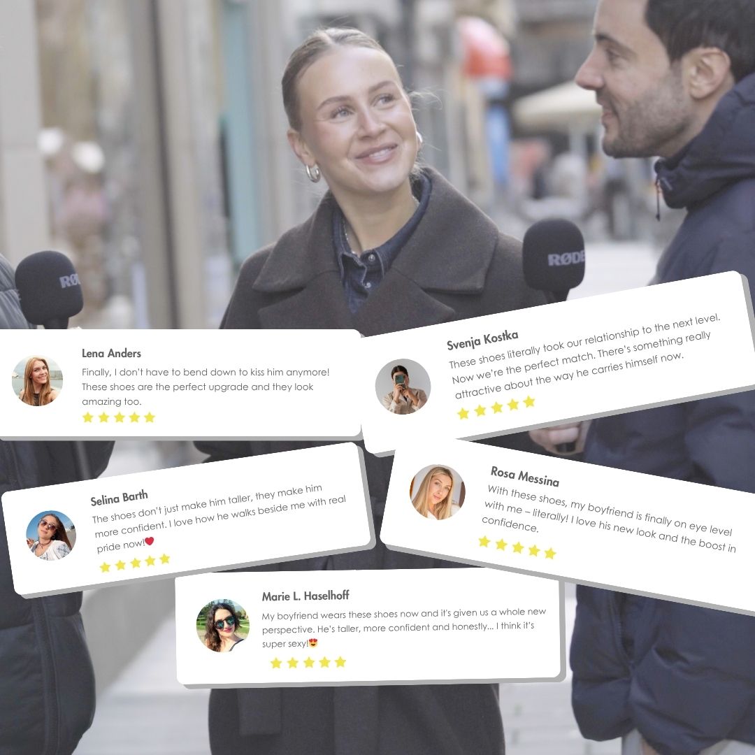 Our shoes offer an invisible lift that adds up to 3.9" in height, depending on the model. The increase is discreet and completely invisible from the outside. Get your new pair now and experience the difference — more height, more confidence.